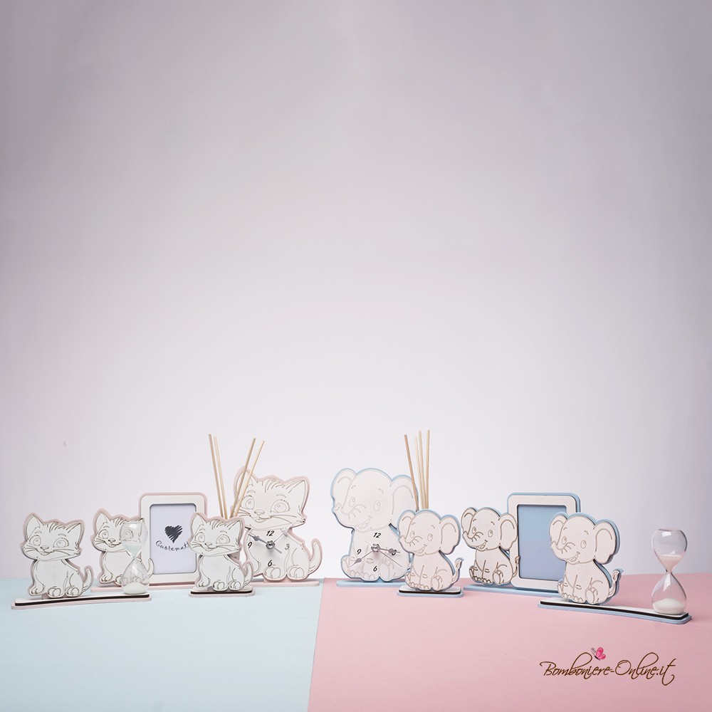 Bomboniera tenero gattino rosa con clessidra segnatempo.