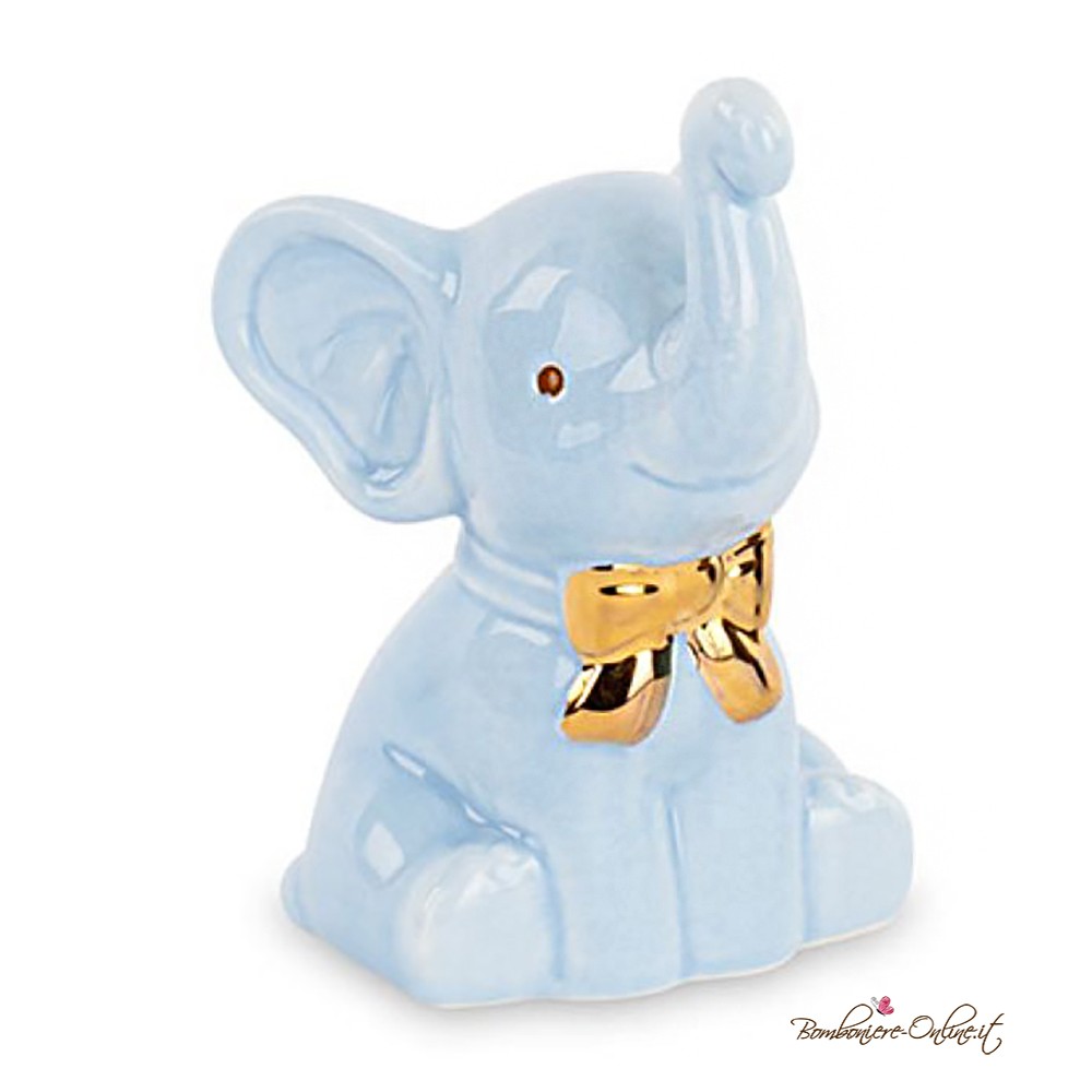 Spiritoso elefantino celeste con prezioso fiocco color oro.