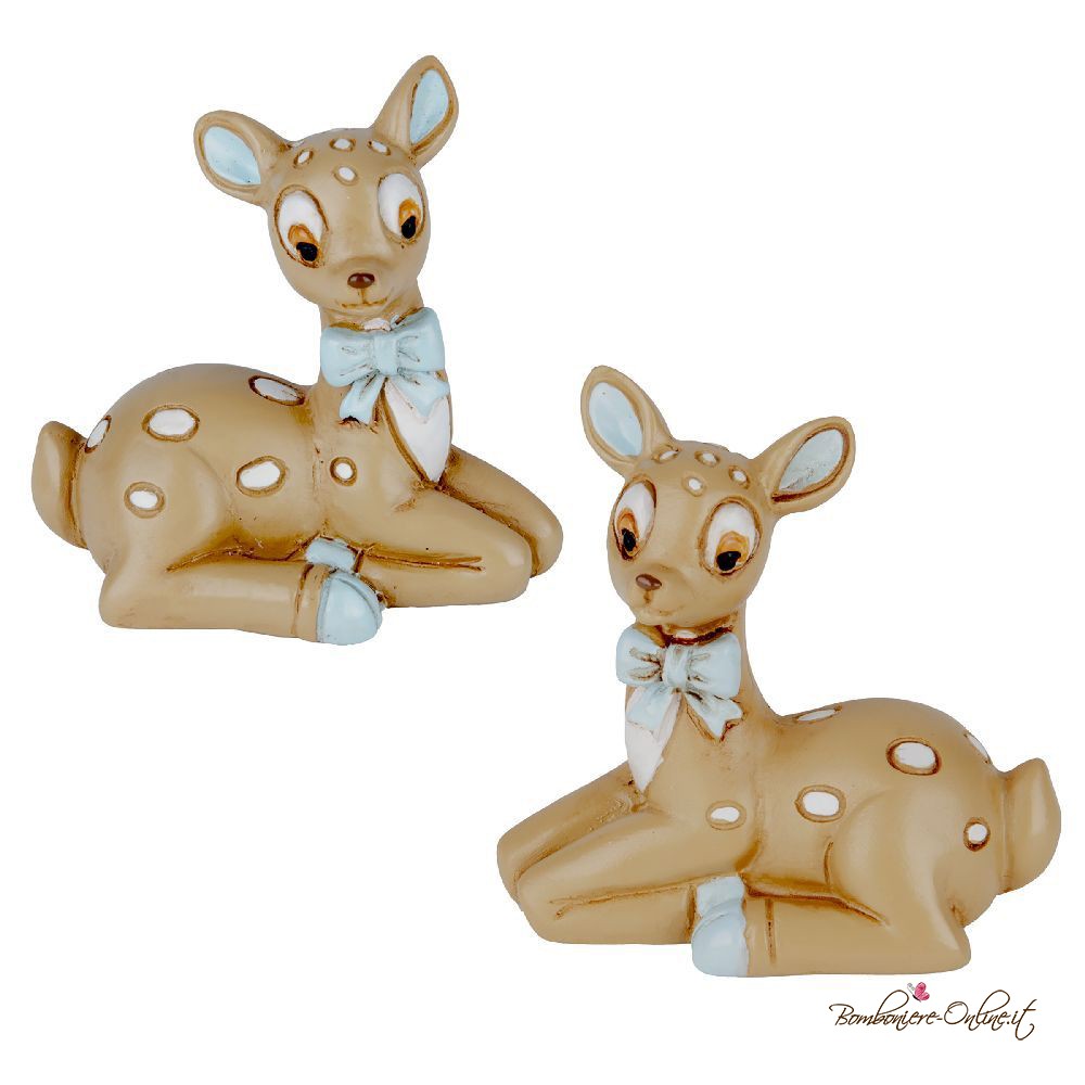 Bomboniera delizioso cerbiatto azzurro fornito nei due soggetti assortiti come da immagine.