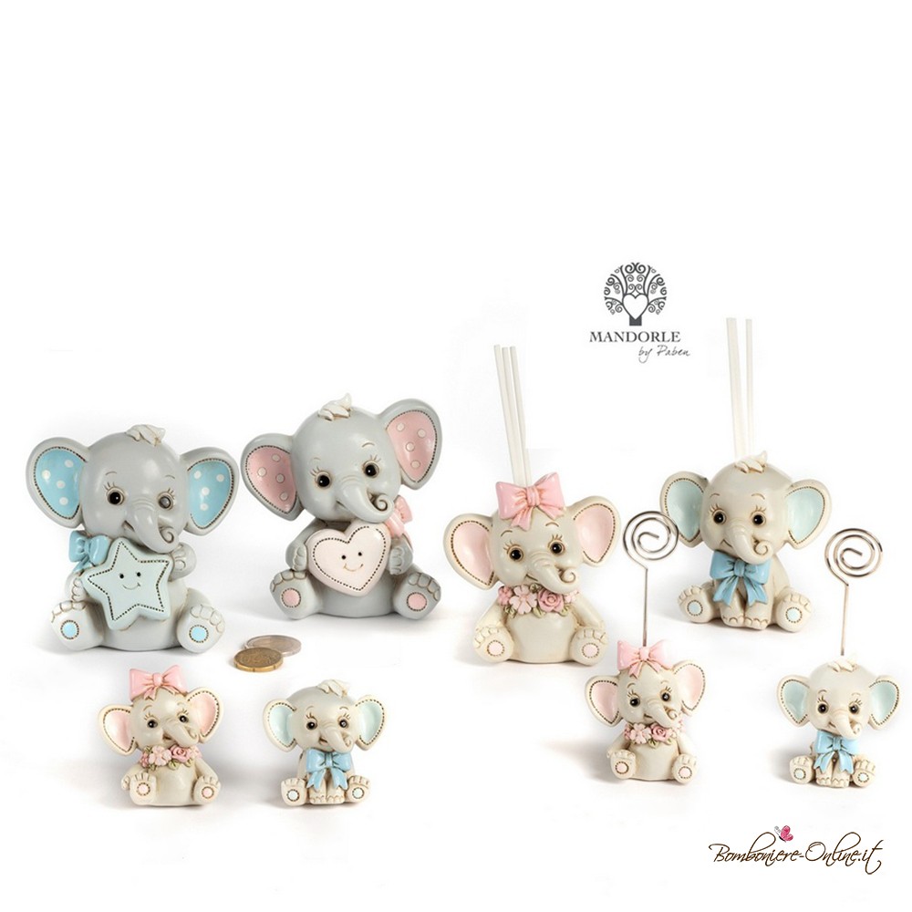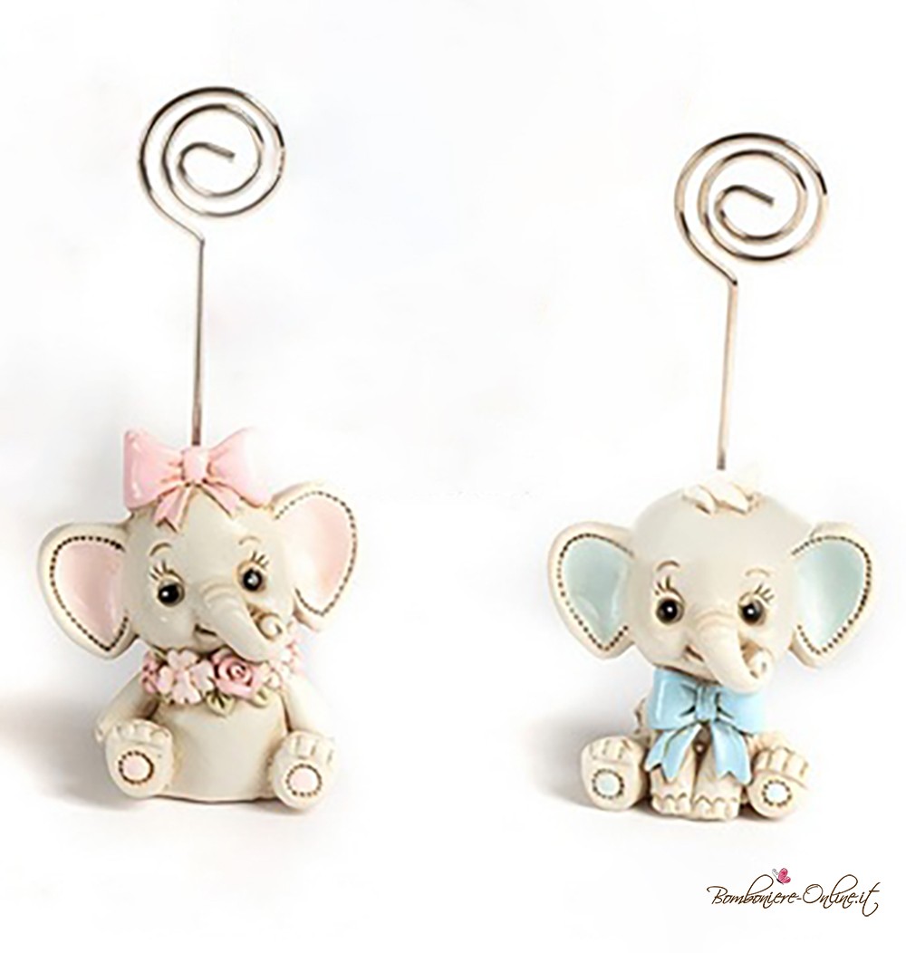 Bomboniera tenero elefantino azzurro con clip portafoto.