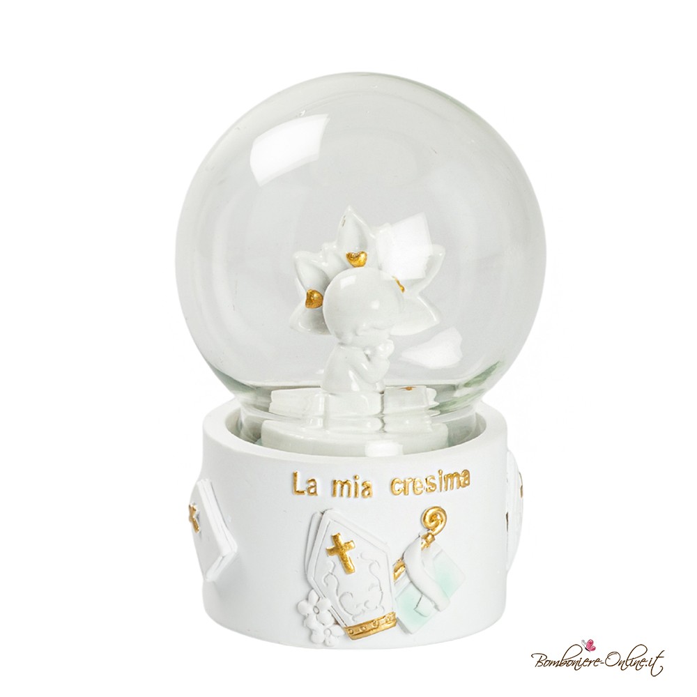 Bomboniera Sfera con Ragazz0 Cresima e dettagli oro.