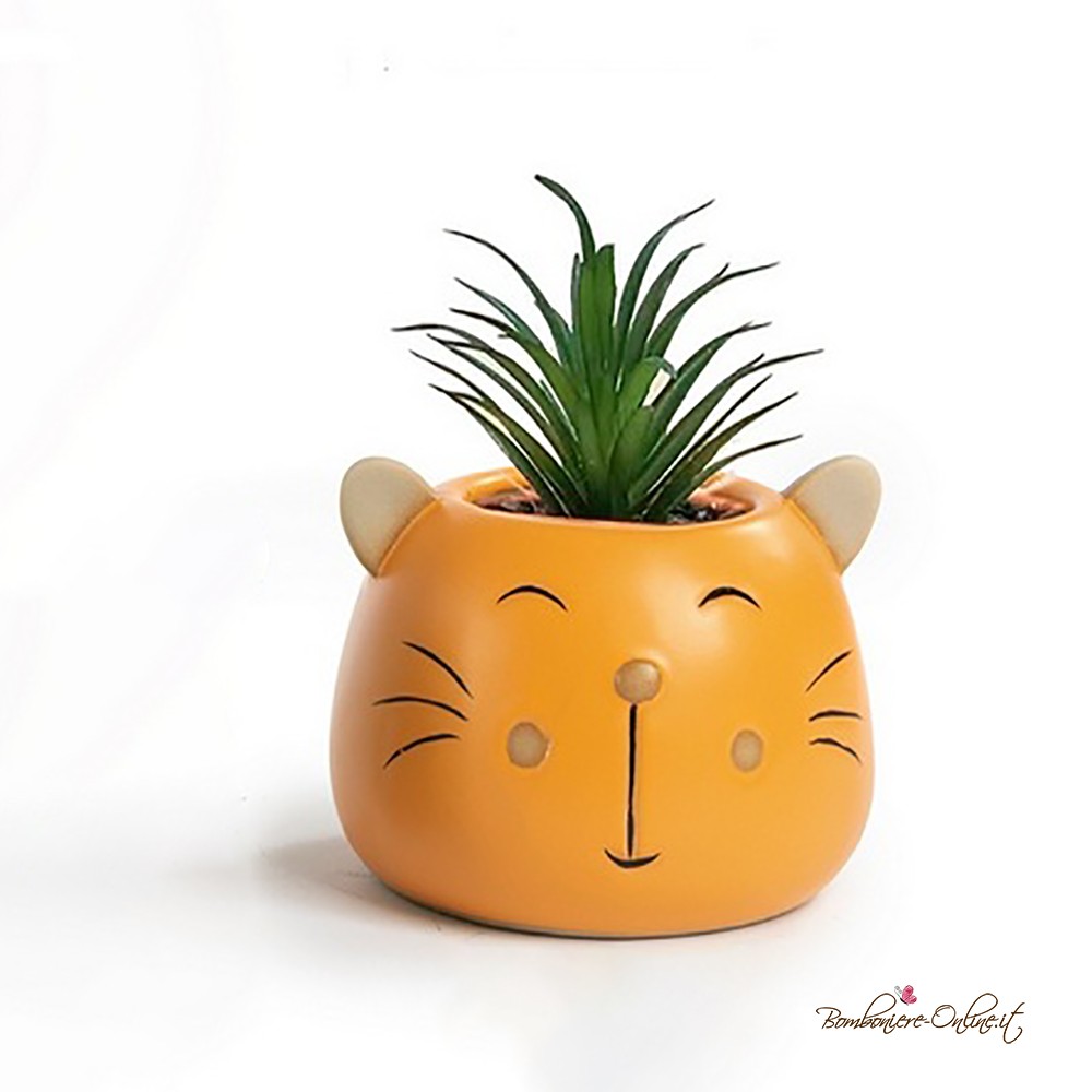 Vasetto Portapiantina in ceramica con soggetto testa di simpatico gattino.
