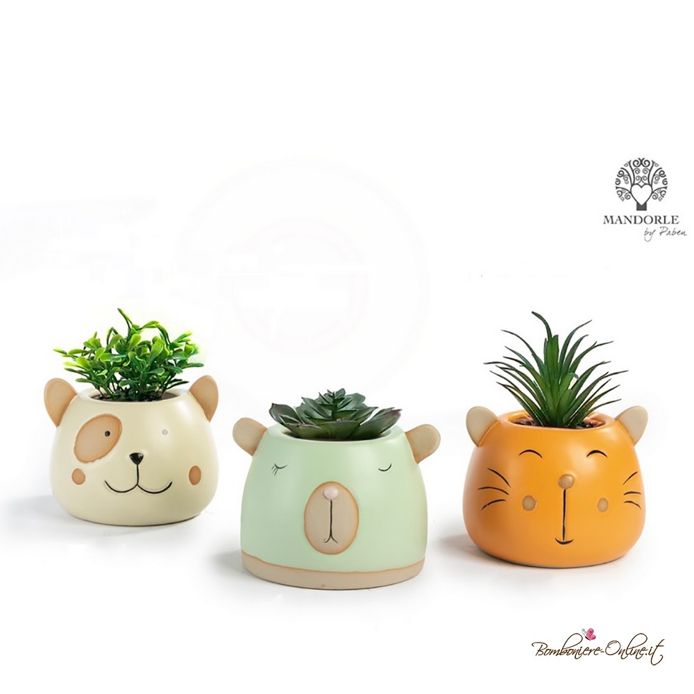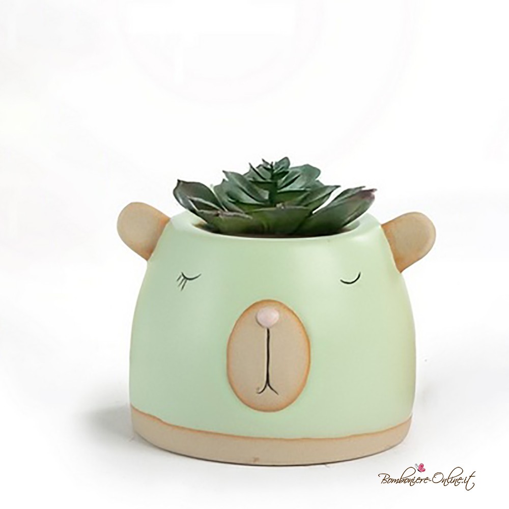 Vasetto Portapiantina in ceramica con soggetto testa di simpatico orsetto.