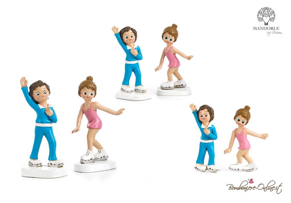 Bomboniera ragazzo pattinatore in pista con pattini da ghiaccio.