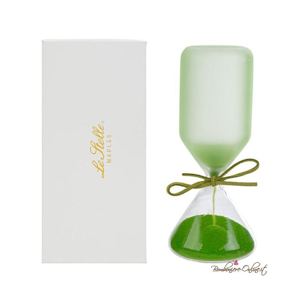 La bomboniera Clessidra in verde con sezione in vetro satinato ha un eleganza intramontabile che unisce funzionalità e design.