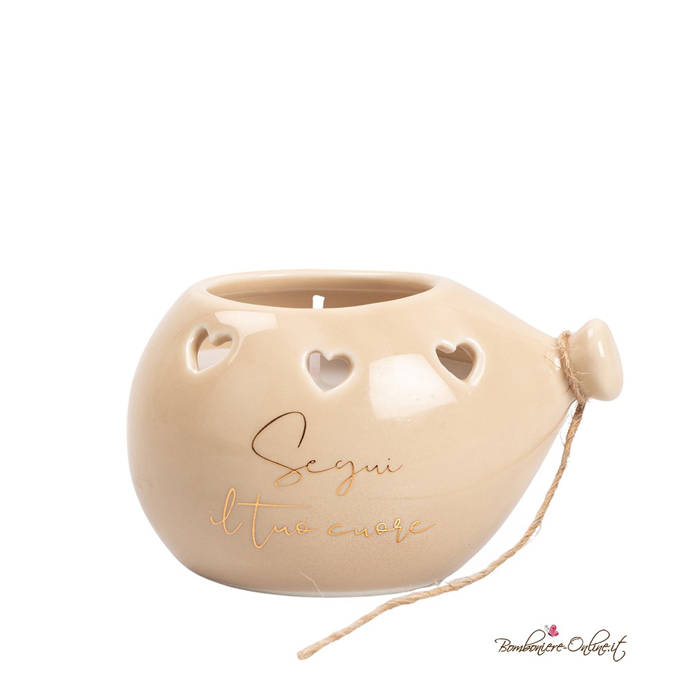 Candela Profumata in palloncino color tortora in ceramica con frase motivazionale.