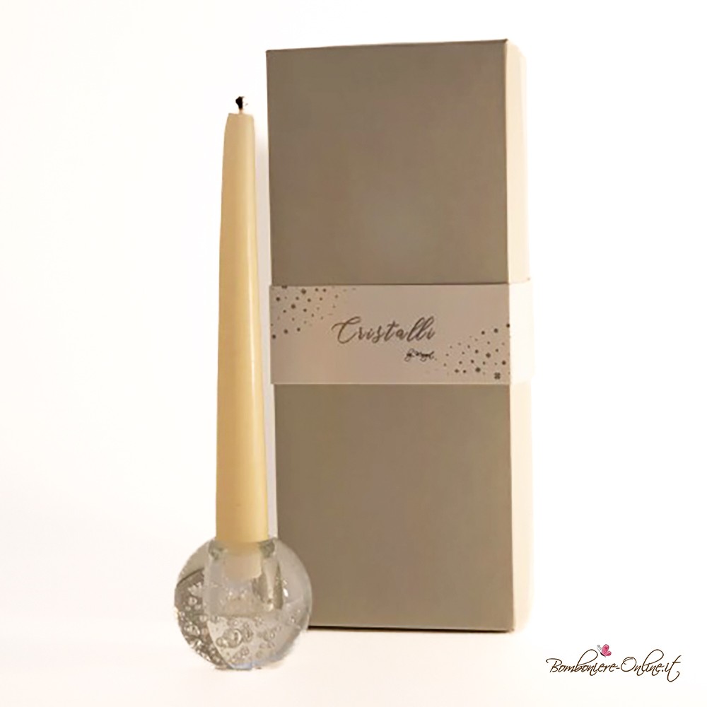 Bomboniera Portacandela sfera di vetro con bollicine interne che lo impreziosiscono.