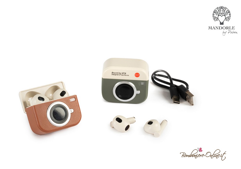 Bomboniera stile vintage Auricolari bluetooth a forma di Fotocamera verde Vintage.